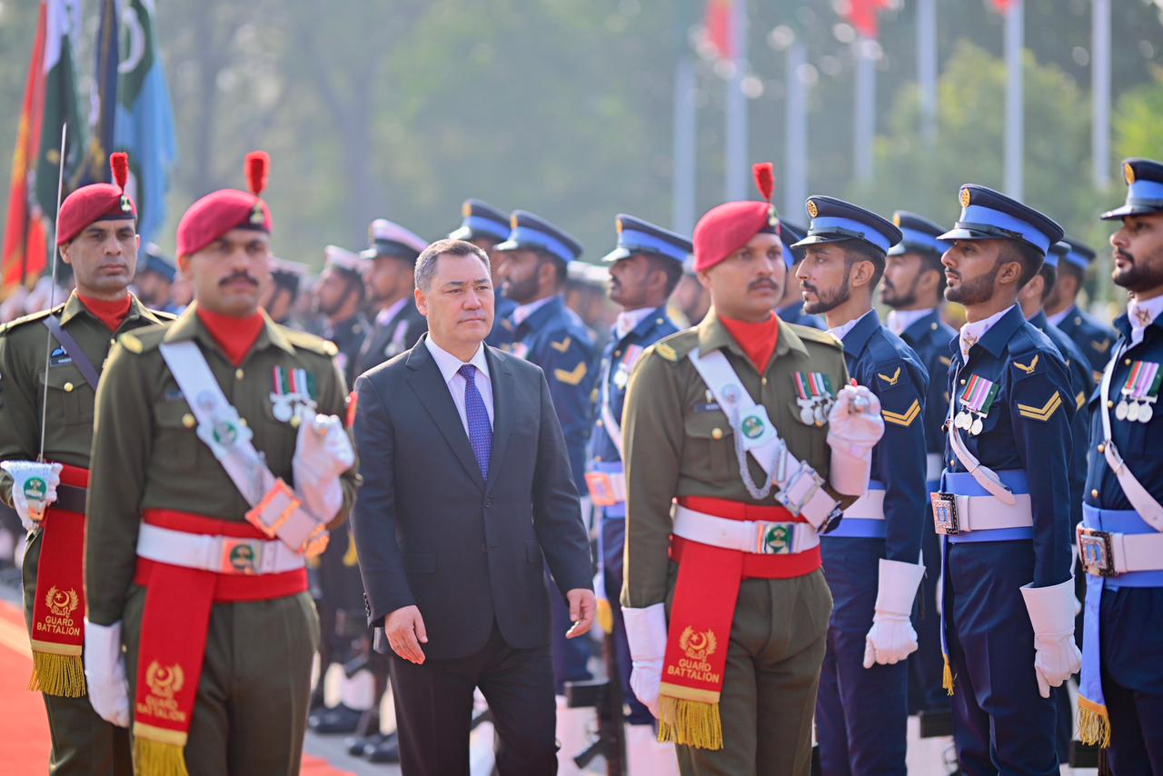 A smartly turned-out contingent of the three services of the Pakistan armed forces presented the guard of honour, which President Zhaparov reviewed.