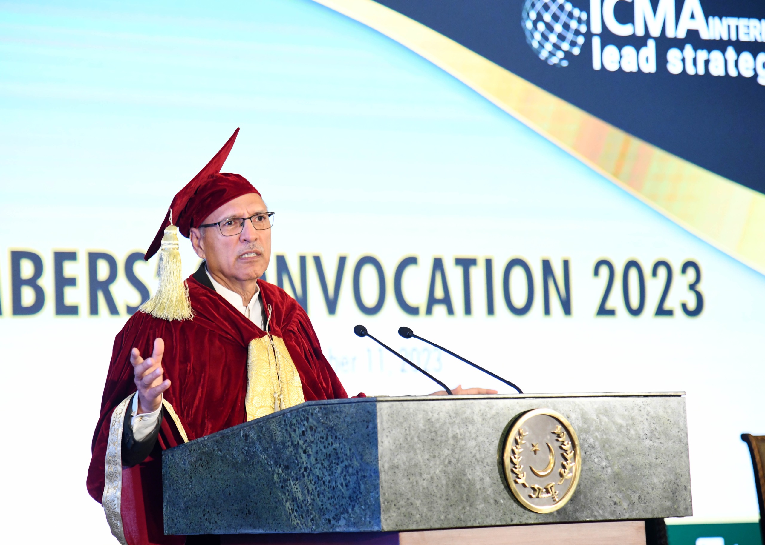 The president, addressing the Members’ Convocation of the Institute of Cost and Management Accountants of Pakistan (ICMA), urged the new graduates to play their role for the welfare of their employees and environmental protection besides fulfilling their responsibilities to their respective industries as well as the society.