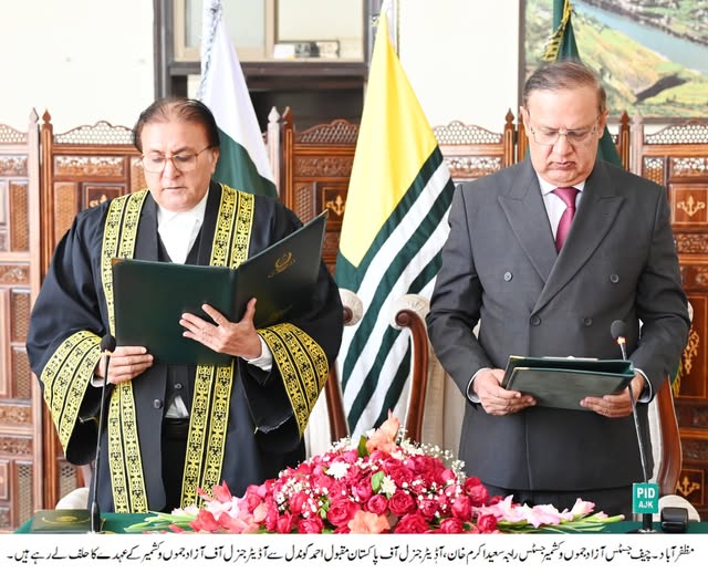 MUZAFFARABAD, Dec 4 (APP): Auditor General of Pakistan Maqbool Ahmed Gondal took the oath of office as the Auditor General of Azad Jammu and Kashmir. Chief Justice of Azad Jammu and Kashmir, Justice Raja Saeed Akram Khan, administered the oath. The oath-taking ceremony was held on Thursday at the Supreme Court of Azad Jammu and Kashmir.