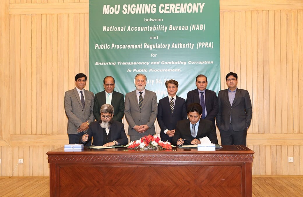 According to the MoU, NAB officers will receive free training sessions on public procurement from PPRA. Similarly, NAB will also provide free training to PPRA officers on preventing corruption in public procurements.