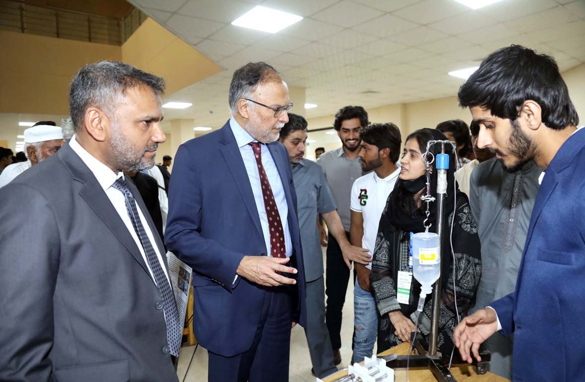 NAROWAL: , Apr 29 (APP): Federal Minister for Planning, Development and Special Initiatives Professor Ahsan Iqbal on Monday participated as a special guest in the ongoing science fair at University of Engineering and Technology (UET) Narowal Campus.