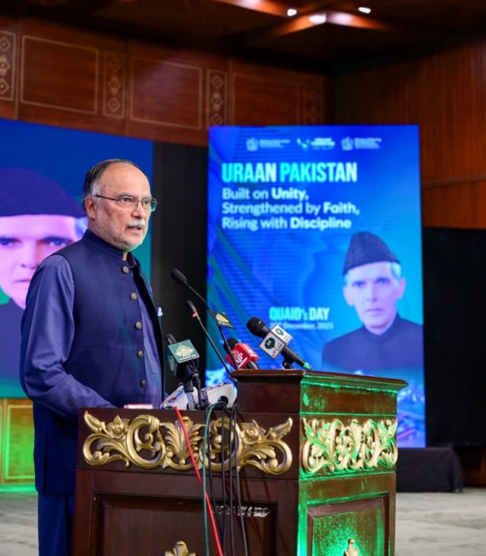 ISLAMABAD, Dec 25 (APP): Federal Minister for Planning, Development and Special Initiatives Professor Ahsan Iqbal on Thursday said that in line with the vision of Uraan Pakistan, the nation must move forward with collective effort, unity and consistency to lead the country towards new horizons of social and economic development, as envisioned by Quaid-e-Azam Muhammad Ali Jinnah.