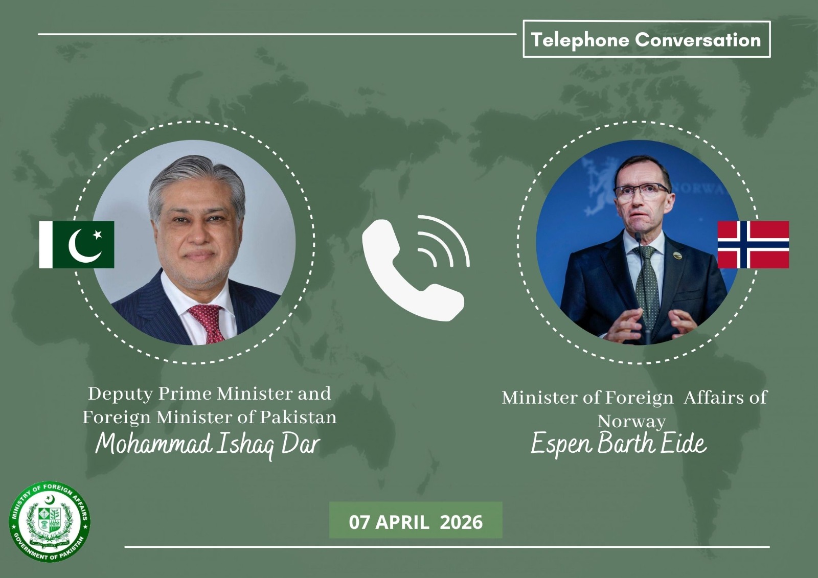 ISLAMABAD: April 07 (APP): Deputy Prime Minister/Foreign Minister Senator Mohammad Ishaq Dar and Foreign Minister of Norway Espen Barth Eide, Tuesday, discussed recent developments in the Middle East and the wider …