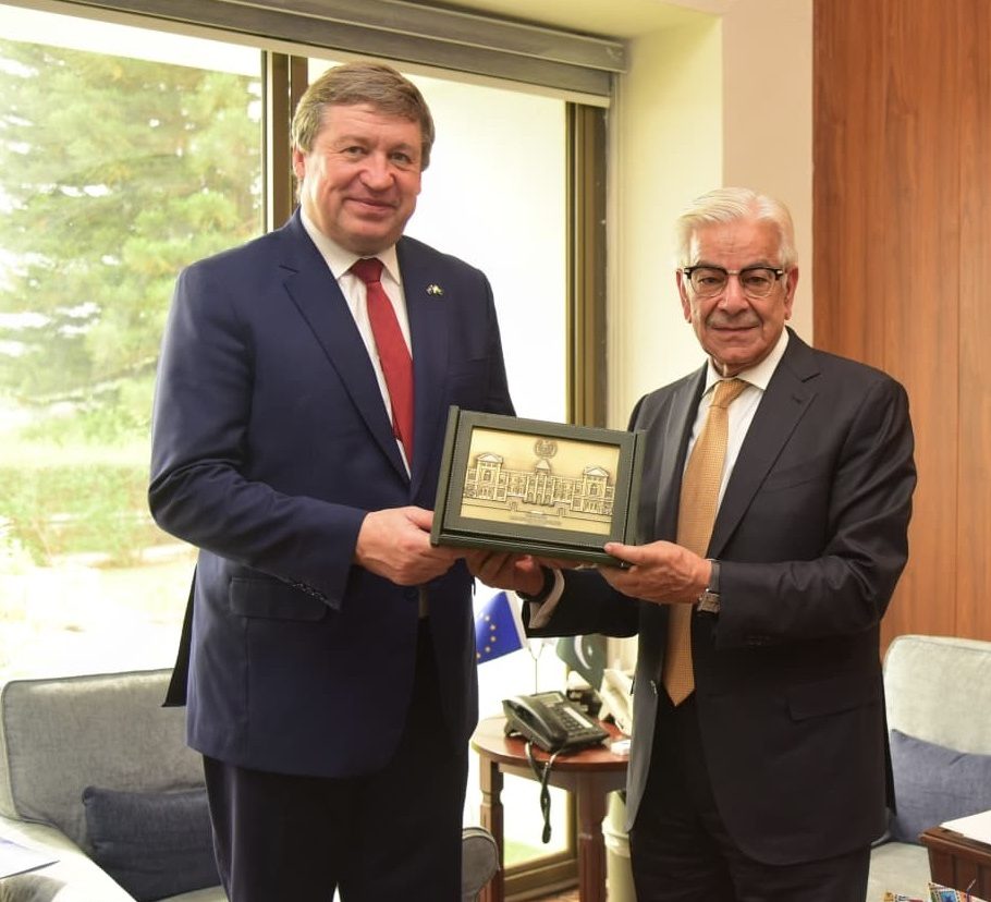 The Ambassador of the European Union (EU) to Pakistan Raimundas Karoblis called on the Federal Minister for Defence Khawaja Muhammad Asif on Wednesday and discussed matters of mutual interest, with a particular focus on enhancing bilateral cooperation in the areas of mutual interest.