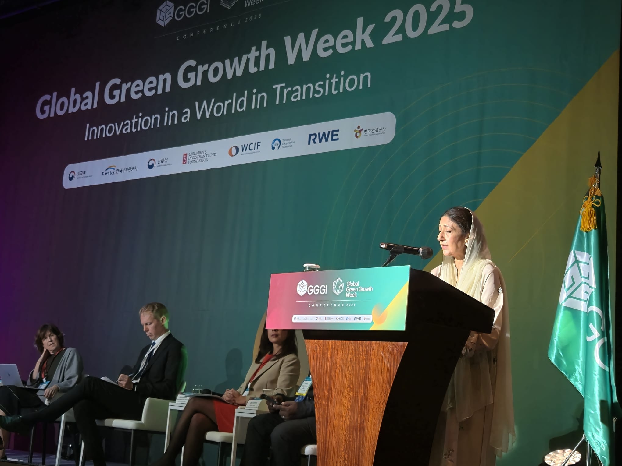 Minister of State for Climate Change and Environmental Coordination, Dr Shezra Mansab Ali Kharal, addressed delegates at the 14th Assembly Session and 18th Council Session of the Global Green Growth Institute (GGGI) in Seoul on Wednesday.