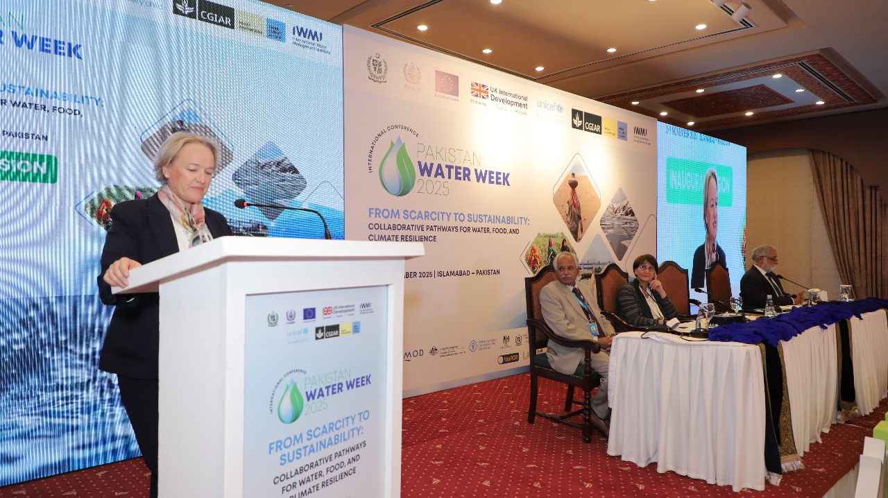 In her keynote, IWMI Deputy Director General Dr Rachael McDonnell said the conference comes at a critical moment: floods in June killed more than 1,000 people and affected nearly seven million. “The water crisis is a climate crisis,” she said, adding that water must be placed at the centre of COP processes and global climate negotiations. Pakistan now has only 900 cubic meters of water per person, a stark reminder of the need for urgent action.