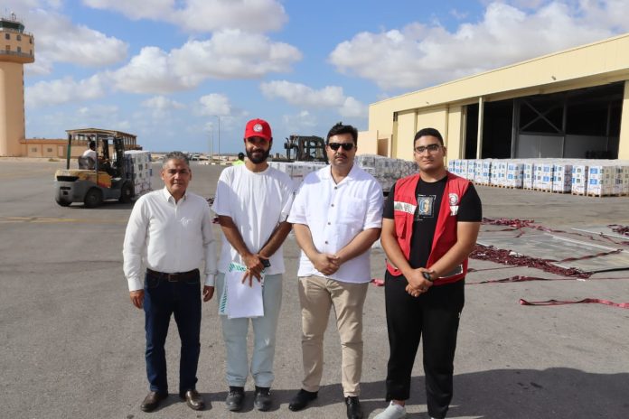 Officials from embassy of Pakistan, Cairo received the relief consignment, and handed over to Egyptian Red Crescent Society for onward dispatch to the residents of Gaza.