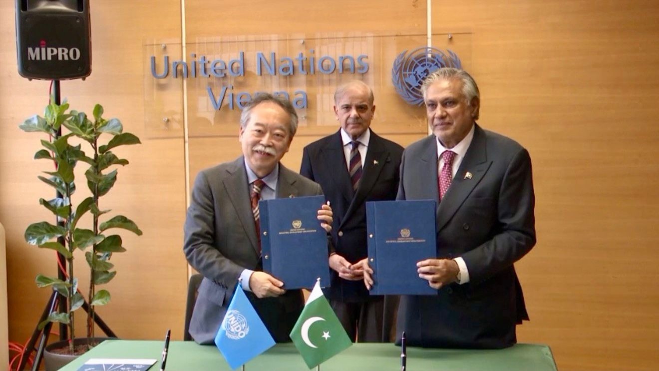 Later, the prime minister attended a ceremony of signing of the United Nations Industrial Development Organization (UNIDO) Programme for Country Partnership (PCP) Pakistan 2025–2030, the United Nations Office on Drugs and Crime (UNODC) Country Programme Pakistan, and a cooperation agreement between the Institute of Nuclear Medicine and Oncology Lahore (INMOL) and the International Atomic Energy Agency (IAEA).