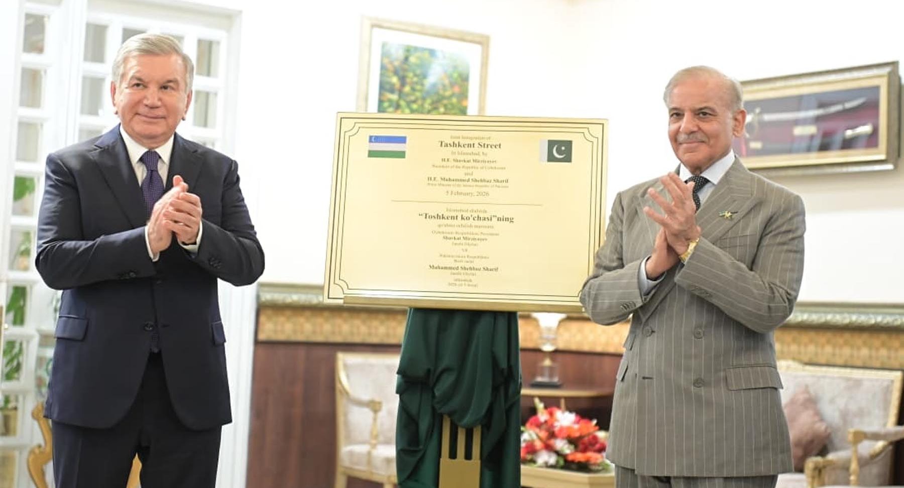 A road in sector F-10 of Islamabad has been renamed as Tashkent Street. Both leaders unveiled a commemorative plaque to name the road in F-10 as Tashkent Street.