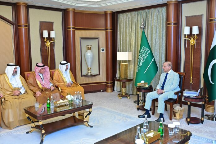 RIYADH, Oct 30 (APP): Prime Minister Muhammad Shehbaz Sharif on Wednesday met with the Saudi Investment Minister Engr. Khalid bin Abdulaziz Al-Falih and Advisor at the Saudi Royal Court Mohammad Bin Mazyad Al-Tuwaijri wherein he called for continuing the momentum for creating new opportunities for developing strong economic partnership between the two countries.