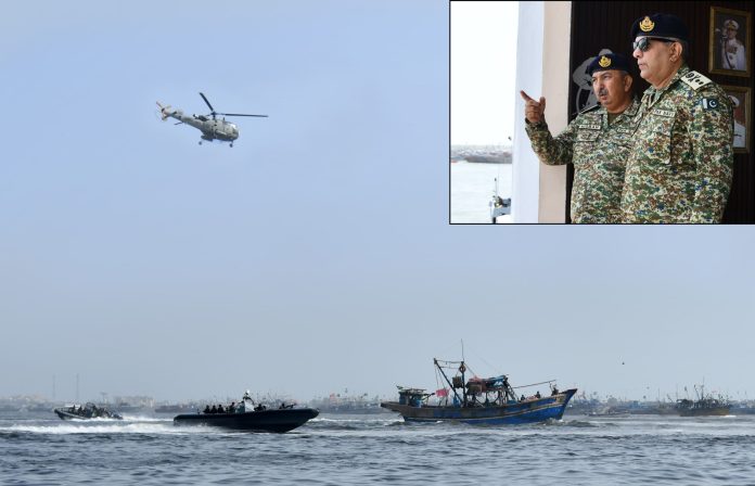 The exercise involved coordinated operations by PN Fleet units, Pak Marines, SSG (Navy) and Naval Aviation assets.