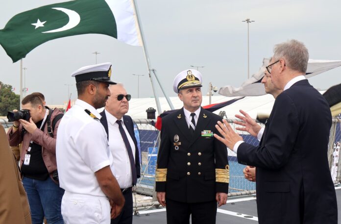 Distinguished visitors included the UAE’s Minister of Tolerance and Coexistence, Romania’s Minister of National Defence, Yemen’s Defence Minister, the Chief of the Romanian Naval Forces, the Chief of Staff of the Egyptian Naval Forces, the Commander of the Royal Saudi Naval Forces, the Commander of the Royal Bahrain Navy, and the CEO of DAMEN Shipyard. Additionally, the ship hosted Pakistan’s Secretary of Defence Production, the Ambassador of Pakistan to the UAE, the Deputy Chief of Naval Staff (Operations), representatives of the UAE Armed Forces, and other notable figures from the international and Pakistani communities.