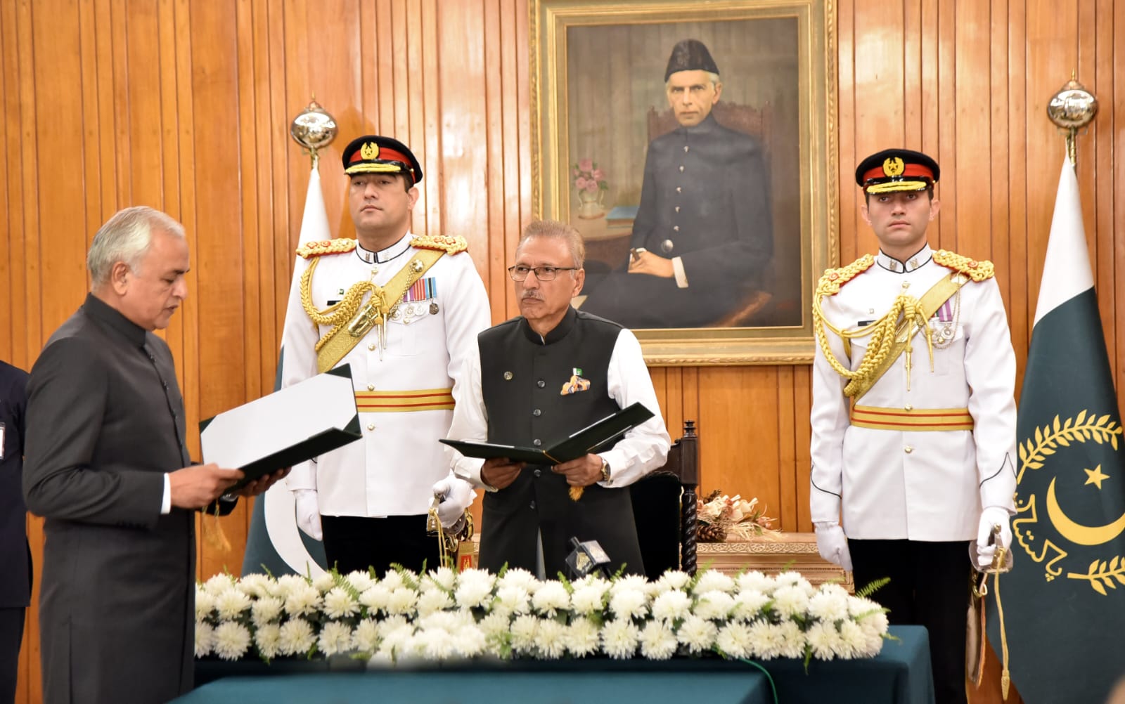 The swearing-in ceremony was held here at the Aiwan-e-Sadr.