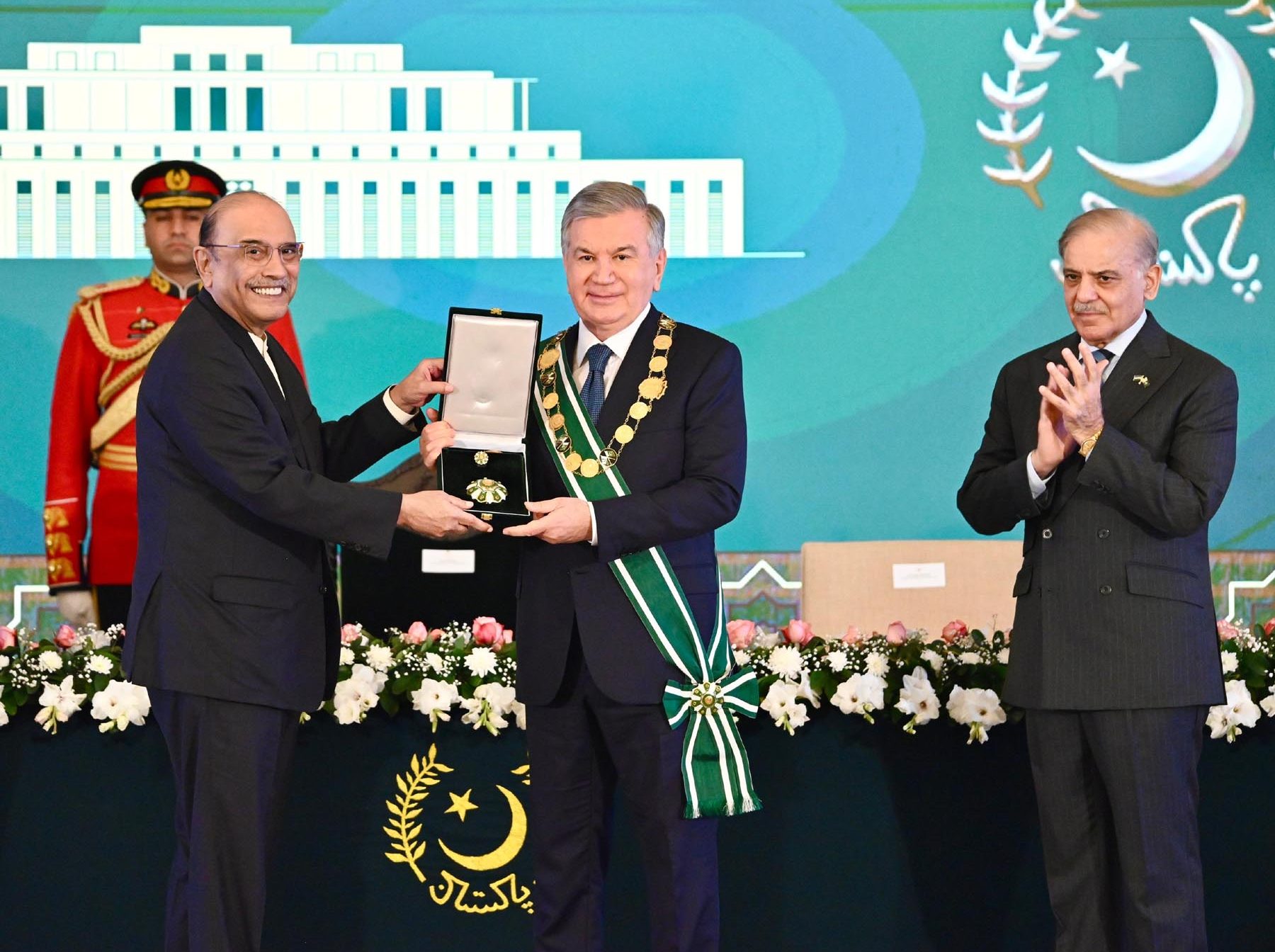 ISLAMABAD, Feb 6 (APP): President Asif Ali Zardari on Friday conferred Nishan-e-Pakistan, the highest civilian award, upon President of Uzbekistan Shavkat Mirziyoyev in recognition of his contribution to strengthening Pakistan–Uzbekistan relations.