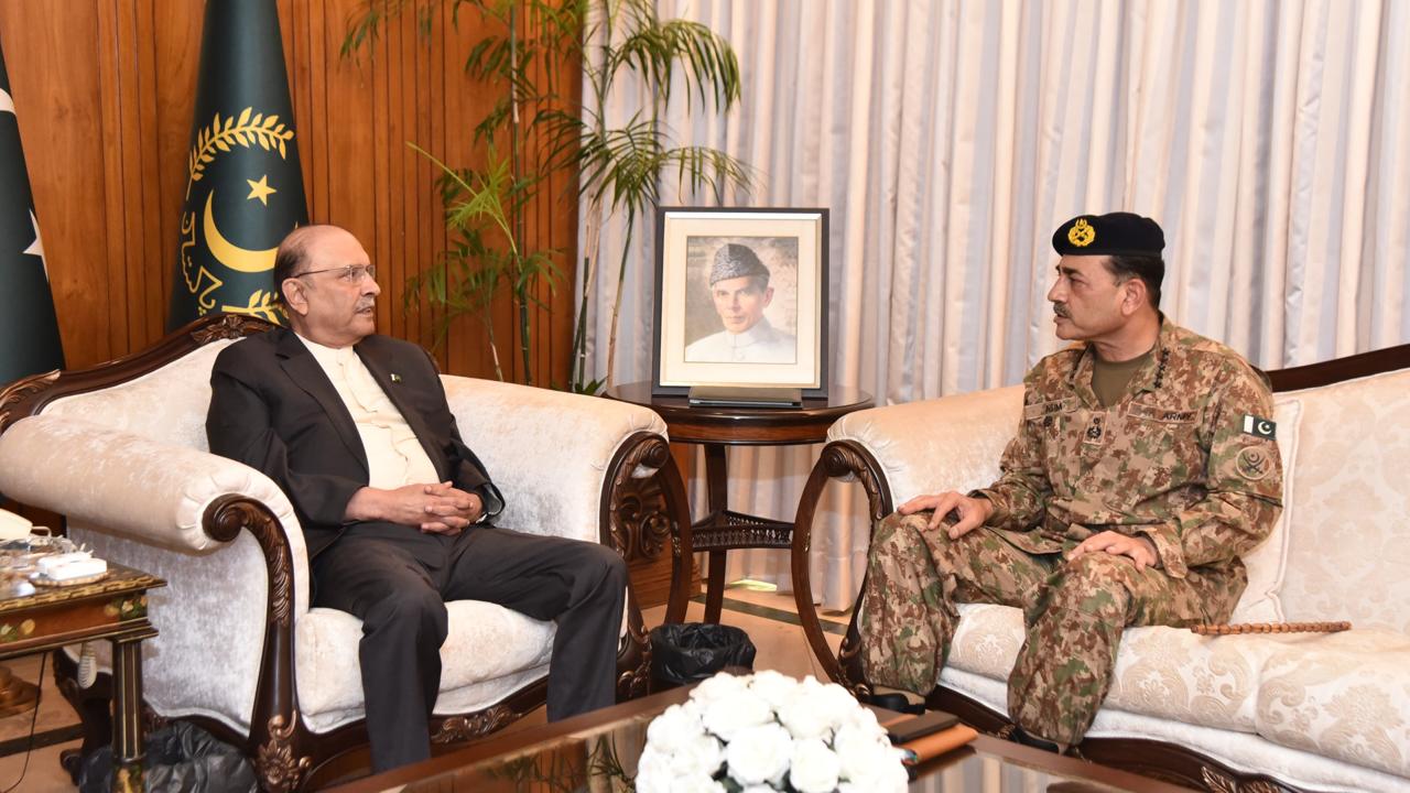ISLAMABAD, Oct 15 (APP): Chief of Army Staff, Field Marshal Syed Asim Munir, NI (M), HJ, Wednesday, called on President Asif Ali Zardari at Aiwan-e-Sadr and briefed him on the overall internal and external security environment of the country.