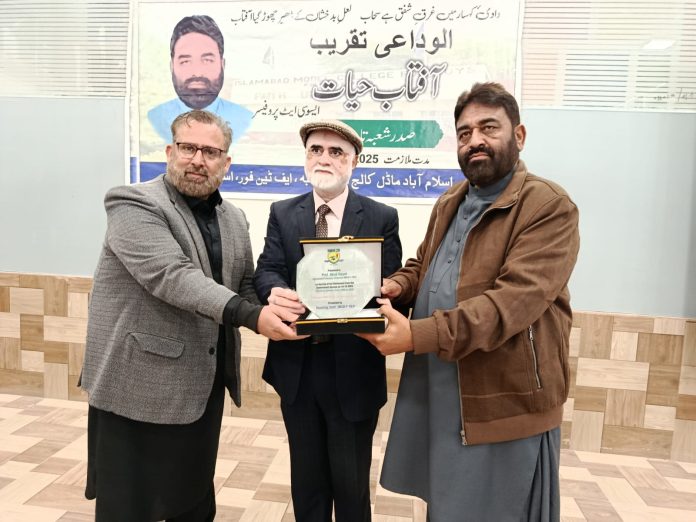 ISLAMABAD, Dec 15 (APP):A retirement reference and farewell ceremony was held at Islamabad Model College for Boys (IMCB) F-10/4 in honour of Professor Aftab Hayat on the eve of his retirement on Monday, marking the conclusion of a distinguished career spanning more than three and a half decades in the Federal Education system.