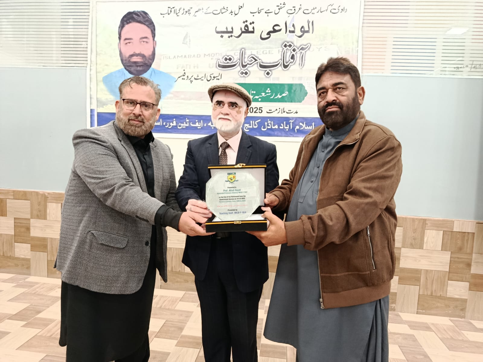 Professor Aftab Hayat was inducted as a lecturer on November 20, 1990, and rendered devoted service at several Federal Government colleges, including Islamabad Model Postgraduate College H-8, IMCB Nilore, IMCB H-9, and, most recently, IMCB F-10/4.