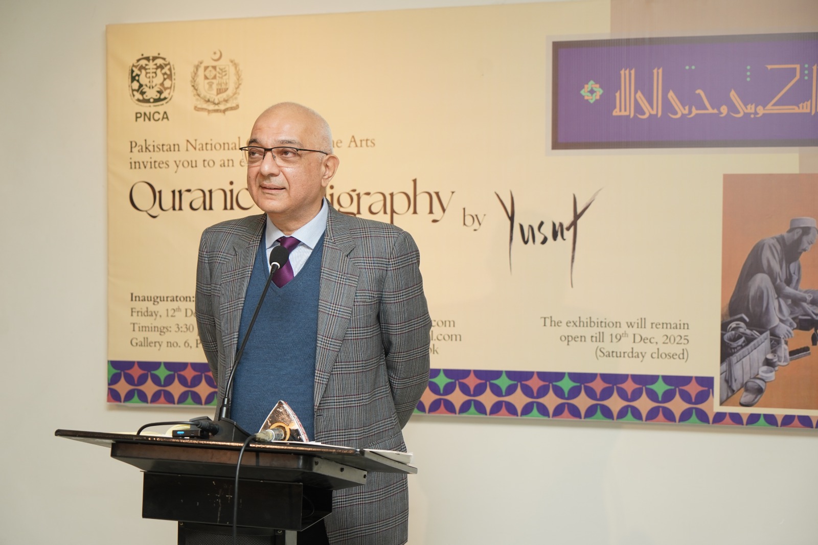 ISLAMABAD, Dec 12 (APP):The Pakistan National Council of the Arts (PNCA) inaugurated “Quranic Calligraphy and Paintings,” a solo exhibition by artist Yusuf Khan, at the National Art Gallery on Thursday, showcasing a unique fusion of Islamic spirituality and social commentary.