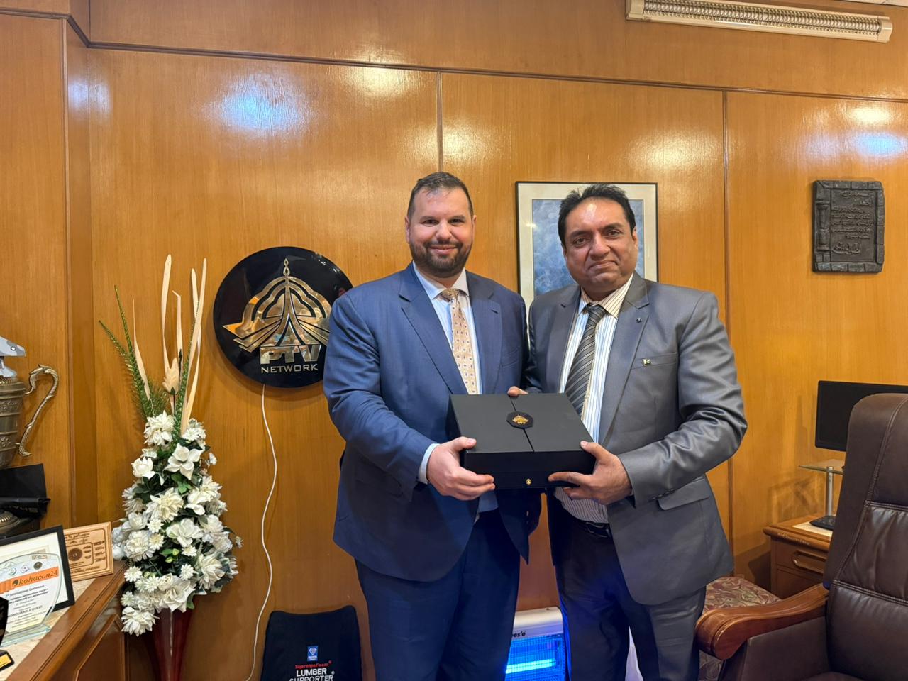 The Ambassador was accompanied by officials from the Pakistan Romania Business Council (PRBC), including Sohail Shamim Firpo, Chairman PRBC, and Atif Farooqi, Advisor and Chief Operating Officer of the council. The visit also included an exclusive interview recorded for national broadcast, highlighting Romania’s growing engagement with Pakistan in diverse fields.