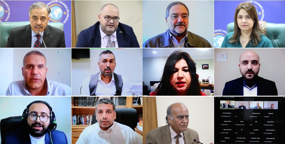 The speakers at the webinar included Ambassador Sohail Mahmood, Director General ISSI; Ambassador Khalid Mahmood, Chairman BoG, ISSI; Dr Nader Al-Turk, the Deputy Ambassador of Palestine in Pakistan; Dr. Moatamer Amin, Department of Political Science, University of Cairo, Egypt; Dr. Joseph Bahout, Director, Issam Fares Institute for Public Policy and International Affairs (IFI) at the American University of Beirut (AUB), Lebanon; Dr. Ali Bakir, Professor, Ibn Khaldon Centre for Humanities and Social Sciences, Qatar University, Doha; Dr. Bilgehan Öztürk, Researcher SETA Foundation for Political, Economic and Social Research, Turkiye; Dr. Hanan AlHajeri, Department of Political Science, University of Kuwait; Dr. Aziz Alghashian, Saudi researcher and fellow with the Sectarianism, Proxies and De-sectarianisation project; and Dr. Omid Babelian, Research Fellow IPIS, Iran.