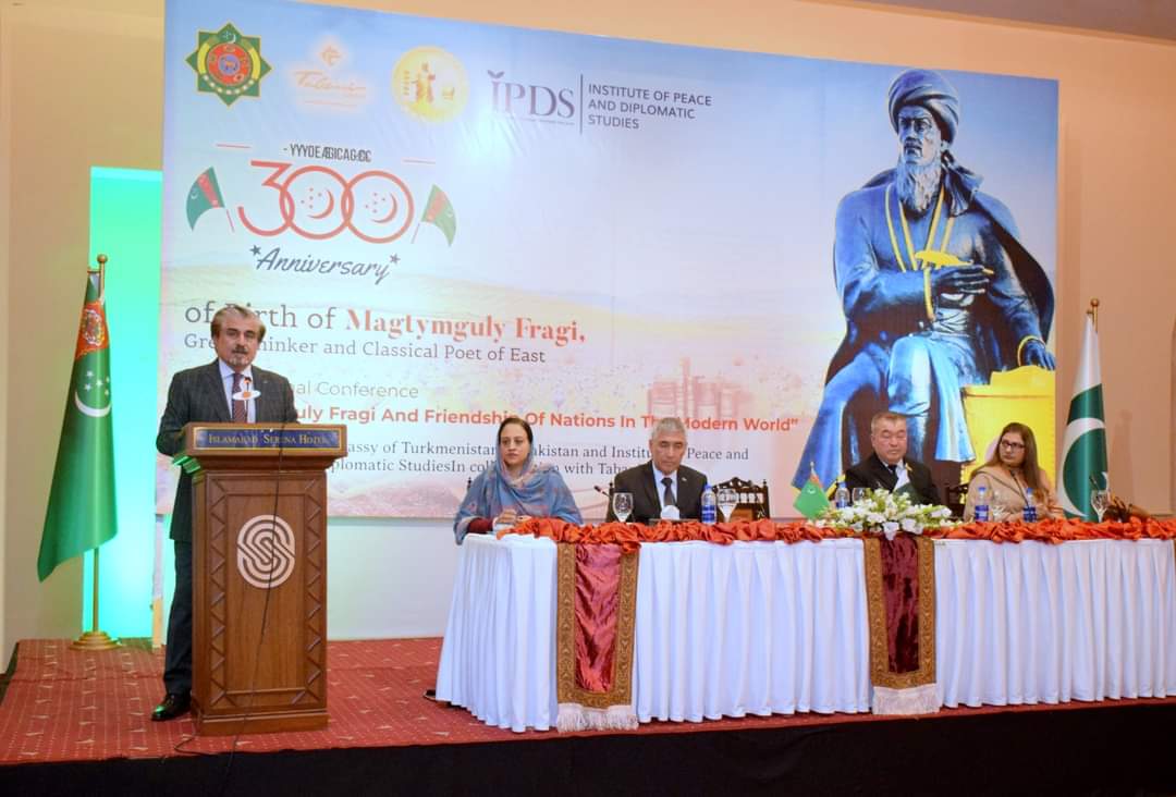 National poet and intellectual of Turkmenistan Magtymguly Fragi is a strong voice for mutual cultural cooperation and integration in our region, speakers said while addressing the Conference on the “300- Birth Anniversary of Turkmenistan National Poet and thinker, Magtymguly Fragi” organized by the Embassy of Turkmenistan to Pakistan and Institute of Peace and Diplomatic Studies in collaboration with Tabani Group here.