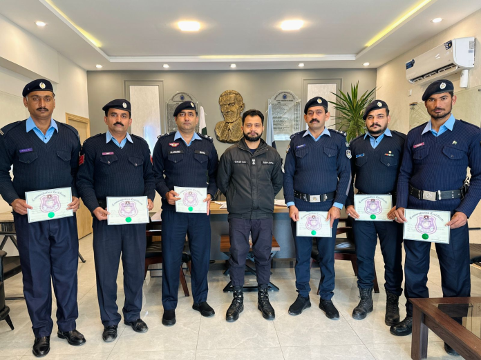 ISLAMABAD, Jan 06 (APP):h Senior Superintendent of Police (SSP) Operations Qazi Ali Raza on Tuesday awarded commendation certificates and cash rewards to SHO Shams Colony Rashid Mahmood and his team in recognition of their outstanding performance and professional dedication in the line of duty.