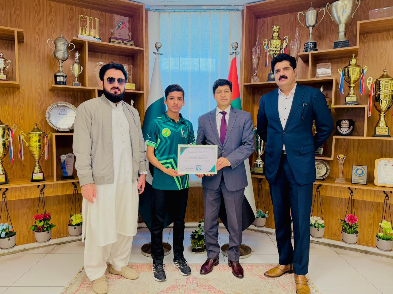 Taekwondo gold medallist Abu Hurairah Shah honored by Pakistani Consul General in Dubai