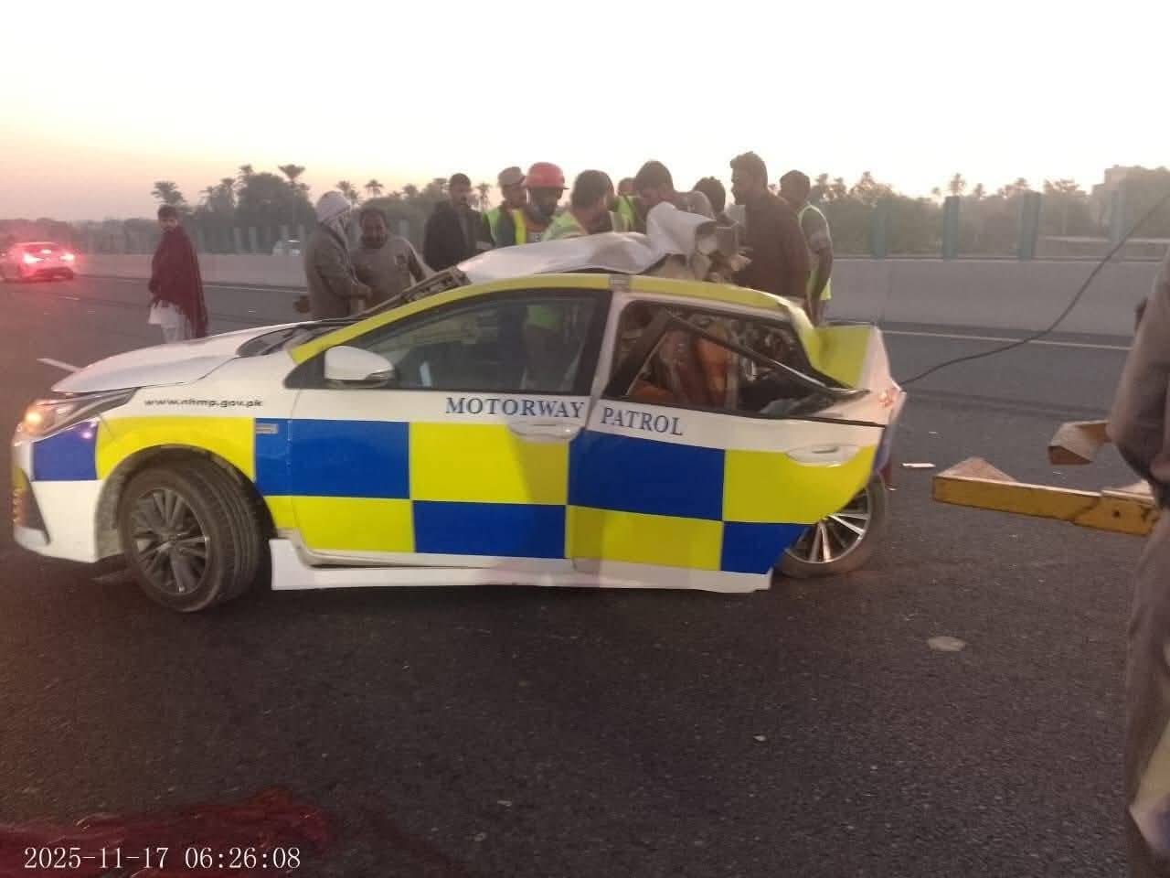 According to the spokesperson for the Motorway Police, the patrolling mobile was struck from the rear, killing all three officials on the spot.
