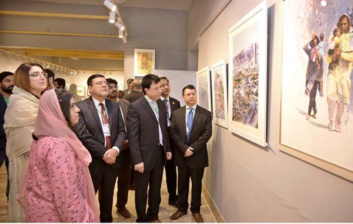 SARGODHA: November 14 – Visitors keenly viewing paintings during 2nd International Watercolor exhibition organized by Institute of Arts & Design University of Sargodha at Zubeida Agha Art Gallery. APP/HSD/MAF/TZD