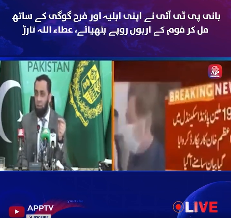 Founder PTI along with his wife and Farah Gogi stole billions of rupees: Attaullah TararJanuary 20,10:39 AM