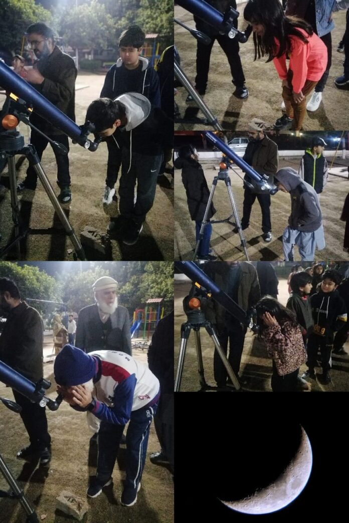 “We sighted craters, mountain ranges, marine areas, and plains on the Moon. However, we also observe planets through a telescope and show it to children as Mars, Jupiter, and Saturn at different times,” he said. Yasir Ali Awan explained that after Fajr time, Jupiter was visible, Saturn at midnight and in between Mars was visible as Jupiter was near Mars. “After that, you also see Venus which is briefly visible after Maghrib prayer timings. We observe and search nebulae and orion constellation personally which is visible in winters as it is more technical and harder to comprehend for children,” he added.