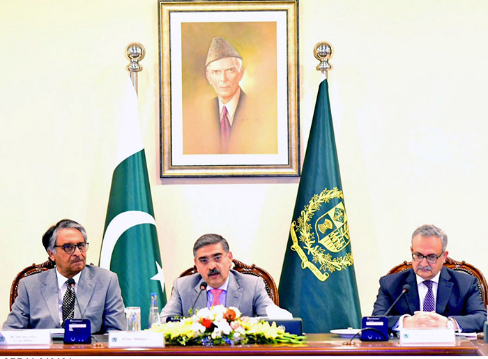Caretaker Prime Minister Anwaar-ul-Haq Kakar addresses the Envoys’ Conference.