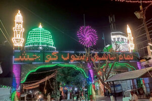 A beautiful view of illuminated Jama Masjid Qasaban in connection with Eid Milad-un-Nabi (SAWW) celebrations