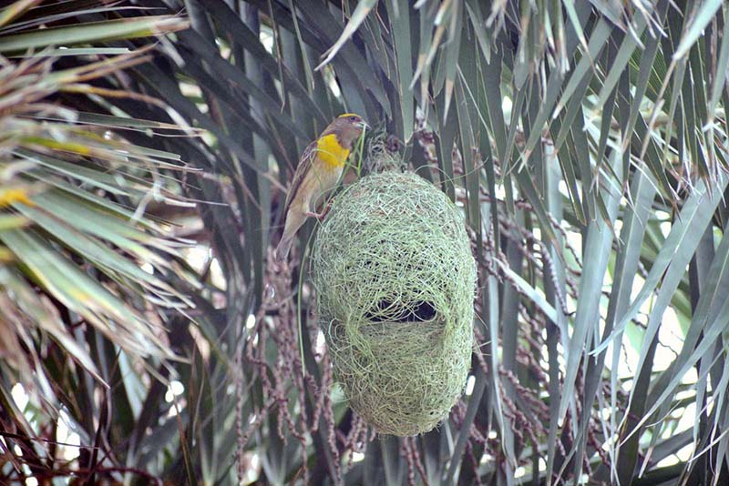 A bird builds its nest among the tree branches, preparing for the nestling season