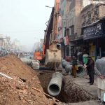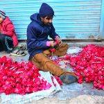 A boatman ferries locals across the Phuleli Canal with the help of a rope. APP10-140126HYDERABAD: January 14 – Previous Post WASA workers lay a new sewerage pipeline at Jhang Bazaar using heavy machinery. Next Post A worker busy in preparing flowers garlands for selling at his workplace.
