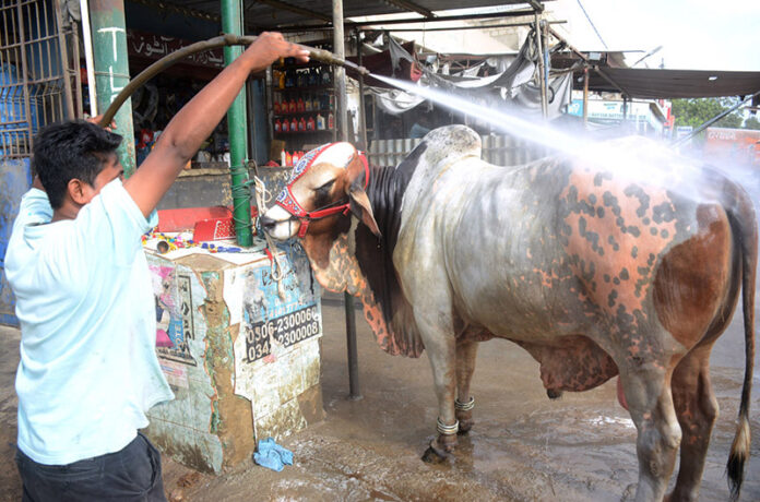 KARACHI: June 13 – Camels the center of attention for everyone visiting to buy for sacrifice at the main cattle market Northern Bypass, Superhighway ahead of Eidul Azha.
