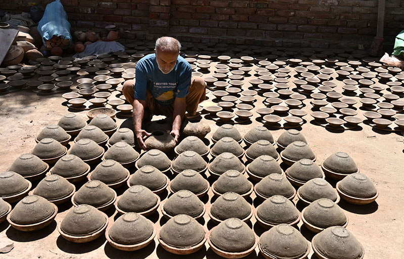 HYDERABAD: March 28 – A craftsman busy preparing clay-made oil lamp at his work place near Kumharpara. APP/AKS/FHA
