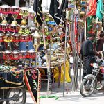 A damaged and clogged drainage system near the General Bus Stand poses a risk to pedestrians and needs urgent repair. APP16-300625MULTAN: June 30 – Previous Post A Shia devotee on a motorcycle selects and purchases an Alam Pak of Imam Hussain (RA) from roadside stalls in preparation for Muharram-ul-Haram. Next Post A street vendor strolls along the road, selling handcrafted palm-leaf fans to attract buyers amid the scorching heat.