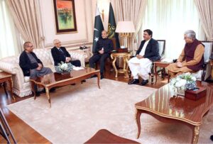 A delegation of members of board of Pakistan Institute of Legislative Development and Transparency (PILDAT) calls on Prime Minister Muhammad Shehbaz Sharif