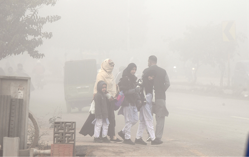 A dense blanket of fog envelops the entire Federal Capital during the early morning hours as children head to school amid low temperatures