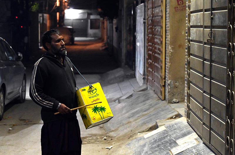 HomePhotosGeneral Coverage PhotosA drum beater walks through a residential area, beating his iron drum...PhotosGeneral Coverage PhotosA drum beater walks through a residential area, beating his iron drum to wake people for Sehri during the holy fasting month of Ramazan-ul-MubarakShareFacebookTwitterPinterestWhatsApp APP11-210226 LAHORE: February 21 - A drum beater walks through a residential area, beating his iron drum to wake people for Sehri during the holy fasting month of Ramazan-ul-Mubarak. APP/MTF/FHA70APP11-210226LAHORE ShareFacebookTwitterPinterestWhatsApp RELATED ARTICLES General Coverage PhotosLabourers busy in construction work of flyover of 10th Avenue during development work in Federal Capital Sat, 21 Feb 2026, 7:35 PM General Coverage PhotosVolunteers arranging Iftar for common people to break their fast along the roadside in the holy month of Ramazan ul Mubarak Sat, 21 Feb 2026, 7:34 PM General Coverage PhotosYoungsters carry dry wood branches on their heads for domestic use near Zero Point in the Federal Capital Sat, 21 Feb 2026, 6:20 PM Most PopularPak, SA Women ODI series begins on Sunday Sat, 21 Feb 2026, 7:56 PM Commissioner orders zero tolerance on overcharging, strengthens price checks Sat, 21 Feb 2026, 7:51 PM Overpricing crackdown in Quetta, 70 arrested, CM vows strict action Sat, 21 Feb 2026, 7:49 PM Punjab Home Department urges citizens to donate charity only to registered organizations Sat, 21 Feb 2026, 7:44 PM Load more