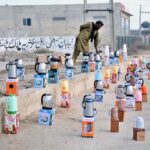 A farmer uses bulls to plough his field, smoothing the ground ,preparing the soil for the next crop. APP15-220125HYDERABAD: January 22- Previous Post A vendor weighs and packs coal into sacks for sale at his setup. Next Post A vendor displays colorful hot and cool vacuum flask Thermos in different sizes to attract passersby at a roadside his setup.