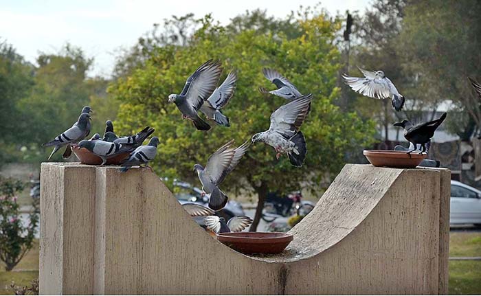 A flock of pigeons picking food at a local park, F-10 in Federal Capital