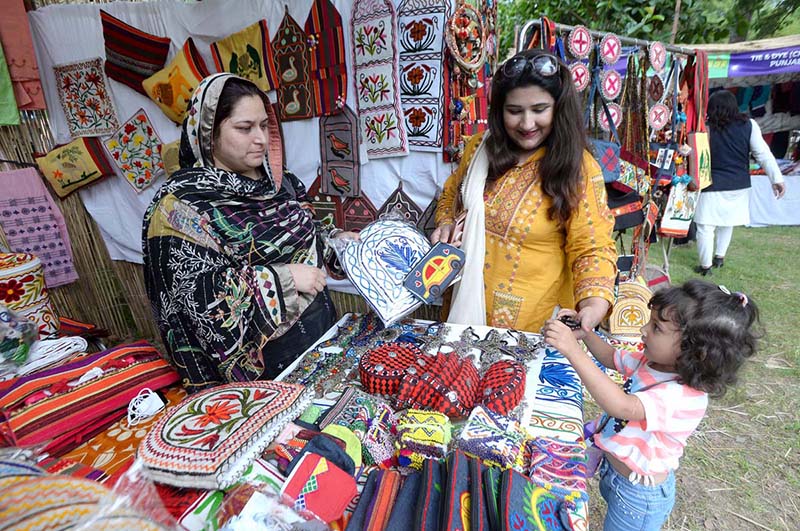 ISLAMABAD: June 15 – A visitor selects handmade embroidery peace from a stall during Saqafati Mela at Lok Virsa. APP/UER/ABB/TZD