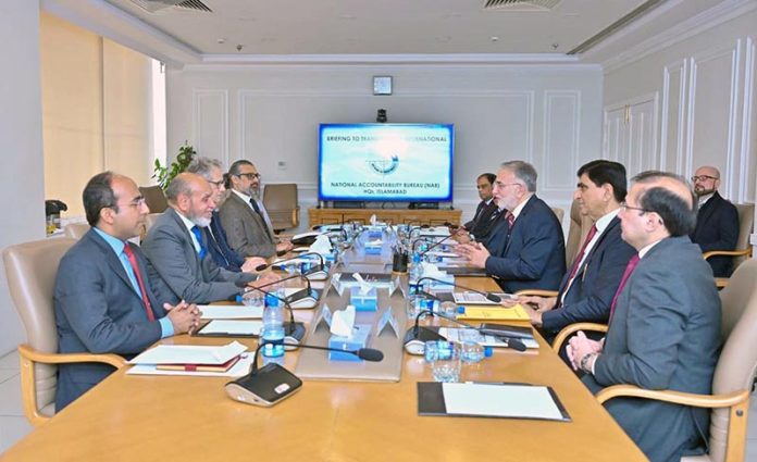 A four member delegation of Transparency International headed by its Chair Mr.Francois Valerian held a meeting with Chairman NAB Lt Gen (R) Nazir Ahmed at NAB (Hq).