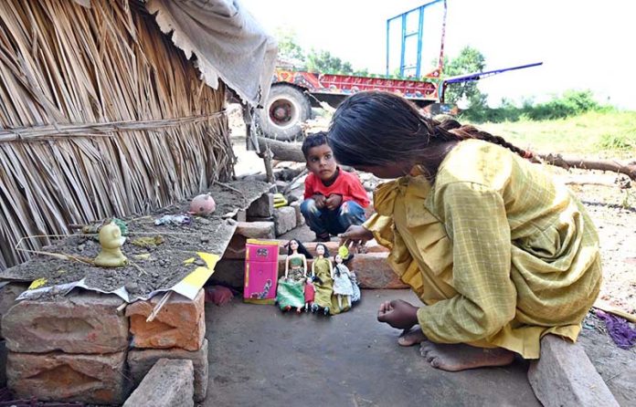 SARGODHA: October 23 – A girl and his brother playing with dolls at Jhang Road. APP/HSD/MAF/TZD