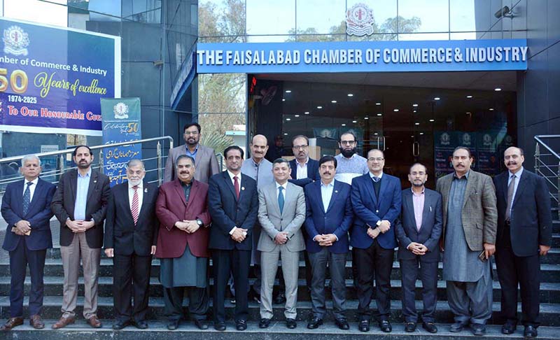 A group photo of H.E. Dr. Marghoob Saleem Butt, Ambassador of Pakistan to Switzerland with President FCCI Rehan Naseem Bharara and other local traders, industrialist and businessmen during their visit to Faisalabad Chamber of Commerce & Industry (FCCI).
