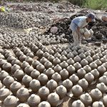 A gypsy bathing outside his hut at Husenabad area. APP39-150925HYDERABAD: September 15 – Previous Post Students Performing Tableau in connection with Defence Day at Government Girls Degree College. Next Post A worker arranging clay-made stuff for dry purpose at his work place.