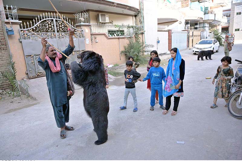A juggler demonstrating a ‘Bear Spectacle’ to amuse children at Bismillah Homes. APP04-181124SARGODHA: November 18 – Previous Post Labourers busy in construction work of bridge at service road along Karnal Sher Khan Shaheed Road during development work in the city. Next Post Speaker National Assembly addressing the participants at 57th convocation of Physicians and Surgeons of Pakistan at Jinnah Convention Center.