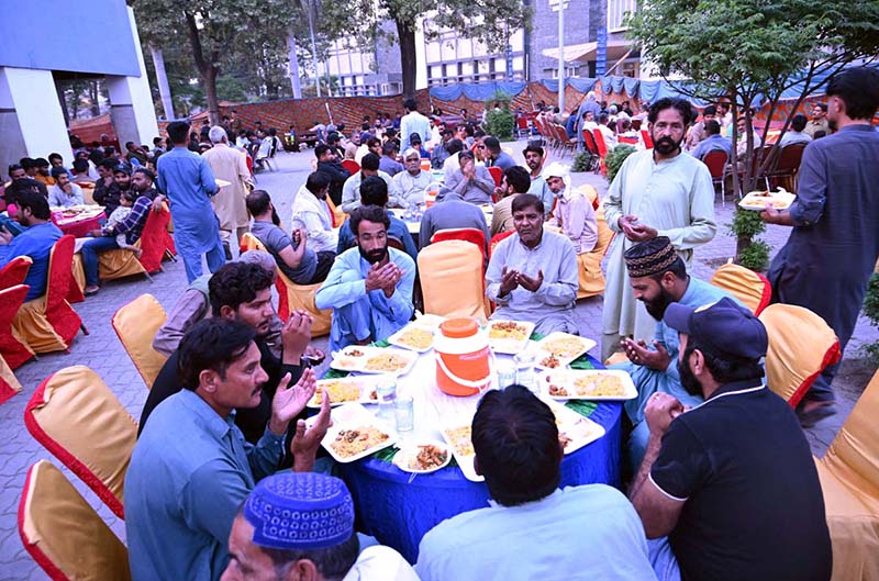 – A large number of faithful sit together to break their fast at Government Allama Iqbal Teaching Hospital. APP29-100326SIALKOT: March 10 Previous Post Muslims carrying their luggage arrive at masjid to observe Itikaf, a spiritual practice performed during the last ten days of the holy month of Ramazan, in which believers seclude themselves in the mosque for continuous prayers and devotion, seeking the blessings of Almighty Allah in accordance with the Sunnah of Prophet Muhammad (PBUH). Next Post Volunteer distributes gifts to poor and deserving women ahead of the upcoming Eid al-Fitr at Edhi Foundation center.